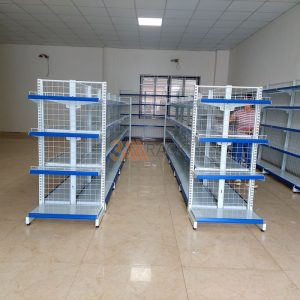 - Có thể là kệ V lỗ hoặc kệ siêu thị chuyên dụng